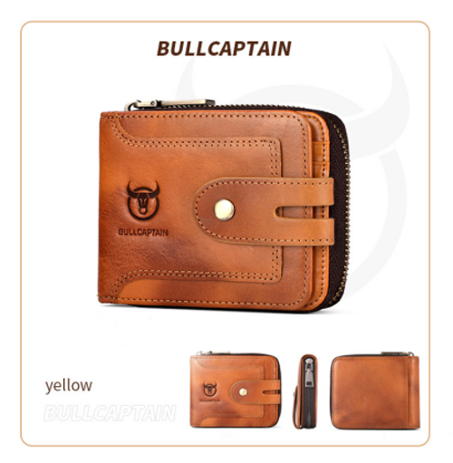 Gift box packaging included. Genuine leather men's multi-functional short zipper wallet with a high-end retro feel, perfect for driver's licenses and business cards.452 sales