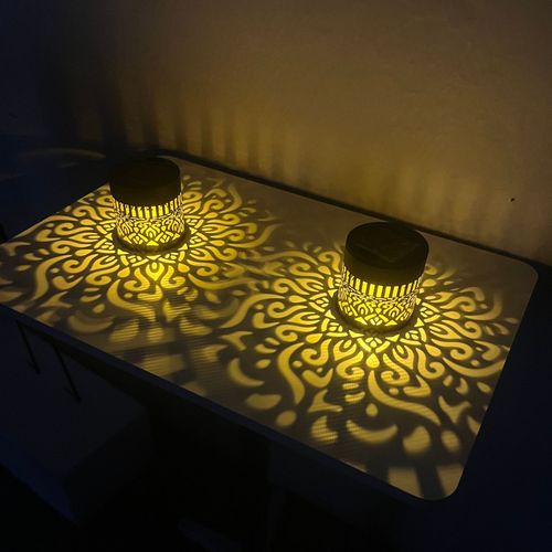 Solar-powered outdoor wall lamp, projector lamp, cylindrical mandala warm light exterior wall lamp