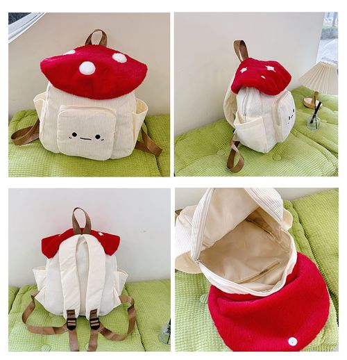 Mushroom-shaped plush double-shoulder backpack, cute cartoon style, casual and versatile bag.