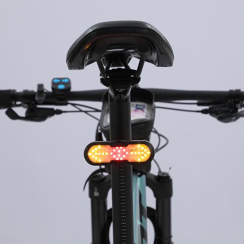 Remote control bicycle taillight with horn, turn signals, and USB charging, a warning light for night riding.